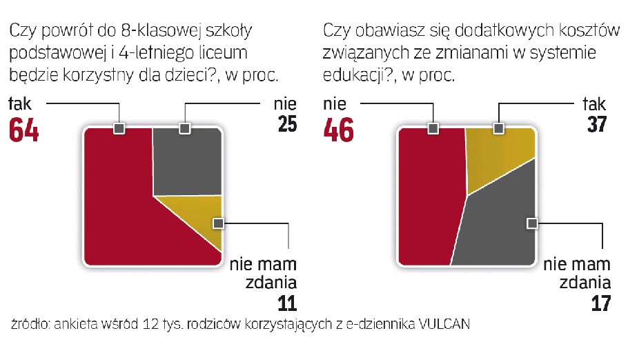 Plany zmian w systemie szkolnictwa podobają się rodzicom. Wynika tak z ankiety, jaką wśród użytkowników e-dziennika przeprowadziła firma VULCAN. Jej wyniki jako pierwsza poznała „Rzeczpospolita”.