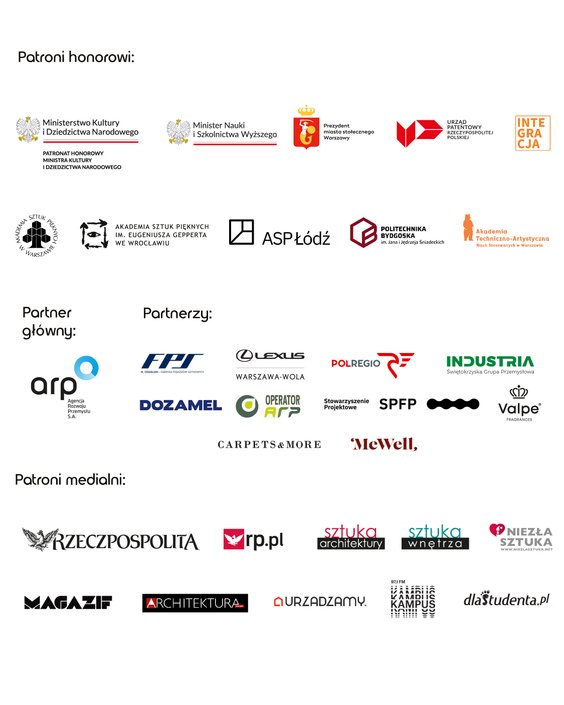 Patroni honorowi: Ministerstwo Kultury i Dziedzictwa Narodowego, Minister Nauki i Szkolnictwa Wyższego, Prezydent Miasta Stołecznego Warszawy, Urząd Patentowy Rzeczypospolitej Polskiej, Integracja LAB, Akademia Sztuk Pięknych w Warszawie, Akademia Sztuk Pięknych im. Eugeniusza Gepperta we Wrocławiu, Akademia Sztuk Pięknych w Łodzi, Politechnika Bydgoska, Akademia Techniczno-Artystyczna Nauk Stosowanych w Warszawie