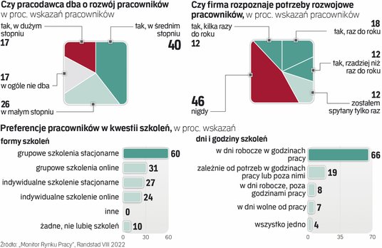 – Pracownicy mówią wprost i potwierdzają to różne badania: nie będzie rozwoju, nie będzie szkoleń, to odejdziemy – komentuje Rafał Glogier-Osiński, ekspert rynku pracy, szef firmy LMC Polska. – Dlatego dziś tak ważne jest, by dbać o poczucie, że obecni i przyszli pracownicy są zaopiekowani pod tym względem – zaznacza.